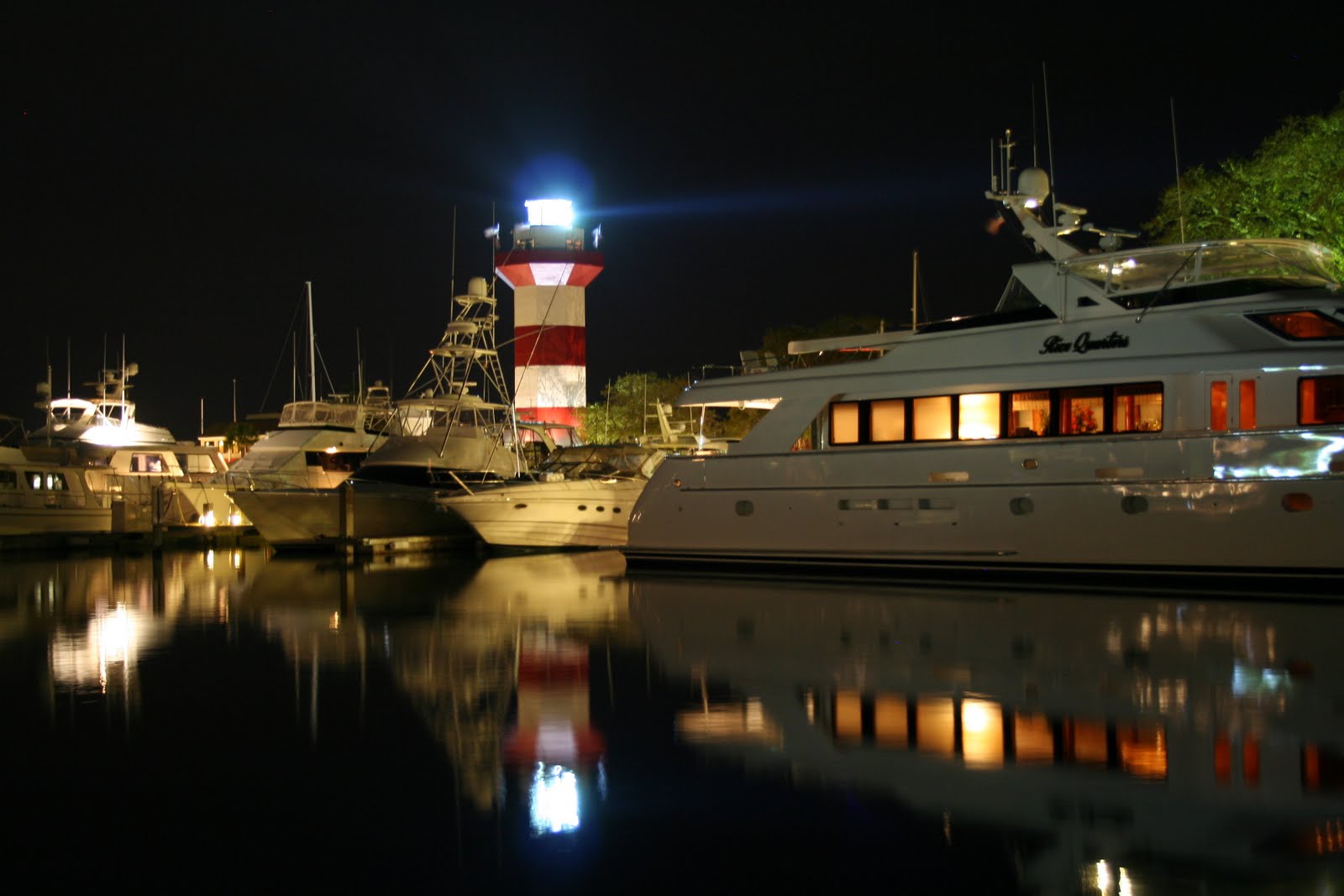 The above photo was taken Sunday night after the final round of the Heritage Golf Tournament. Charleston attorney Joe Rice's 100 foot Hatteras Motoryacht "Rice Quarters" is in the foreground.